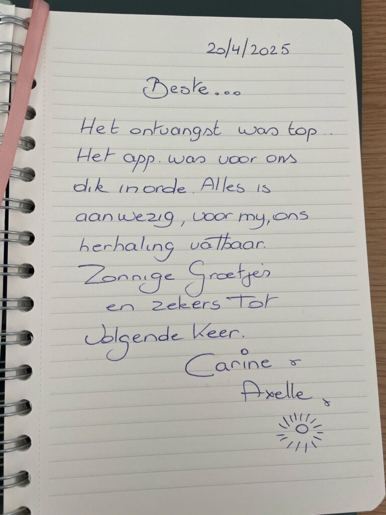 Een warme aanbeveling voor ons zorgzame team.